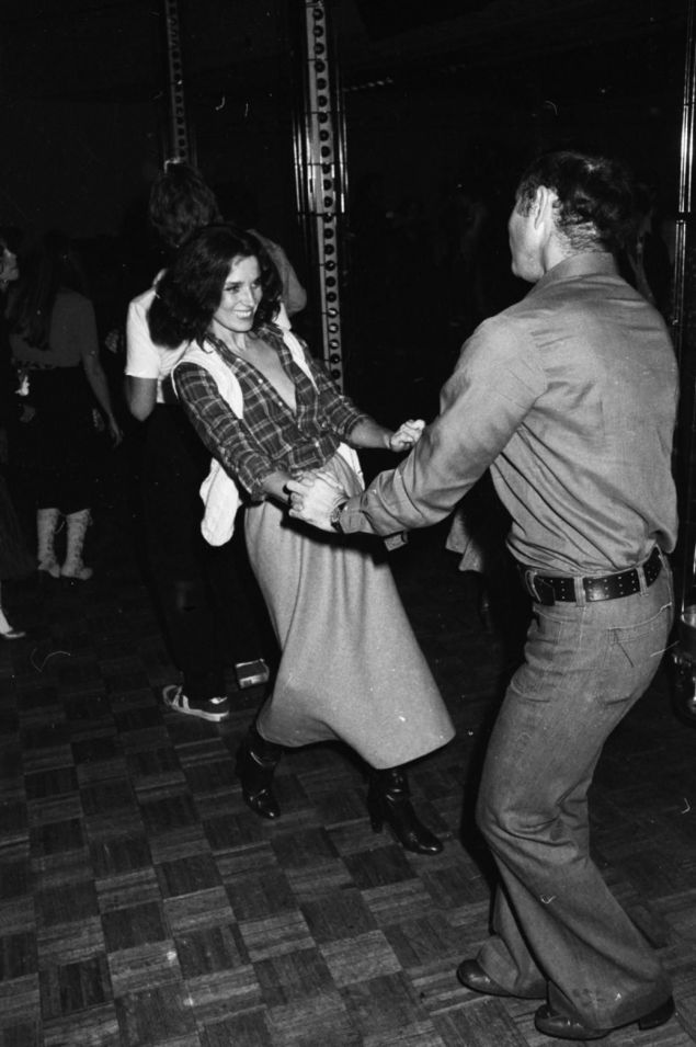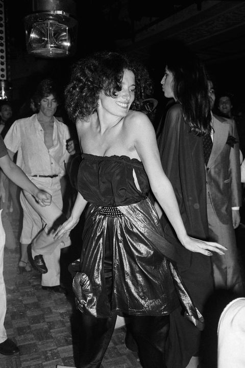 Εδώ χορεύει στο Studio 24, στη Νέα Υόρκη, με τον επιχειρηματία Bruce Nevins, το 1979