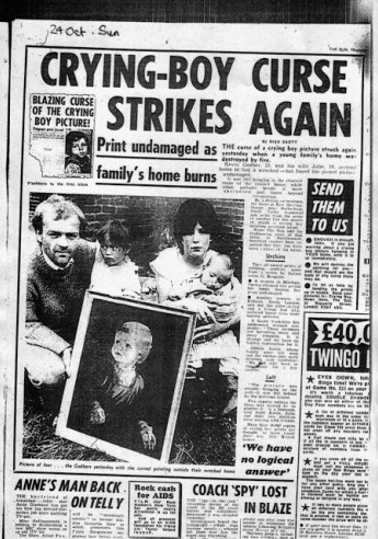 Η εφημερίδα The Sun, η οποία εκείνη την εποχή ήταν από τις πιο δημοφιλείς αγγλόφωνες εφημερίδες, δημοσίευσε στις 4 Σεπτεμβρίου εκείνου του έτους, μια ιστορία με τίτλο: “Η φλεγόμενη κατάρα του αγοριού που κλαίει”.