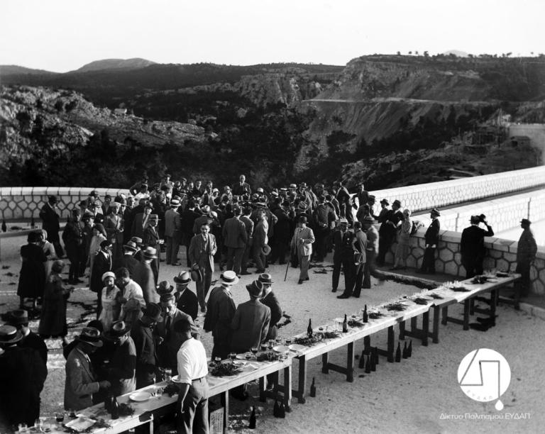 Υπουργοί και υφυπουργοί της κυβέρνησης, ο αρχηγός της αξιωματικής αντιπολίτευσης, Παναγής Τσαλδάρης, ο δήμαρχος Αθηναίων Σπύρος Μερκούρης, ο πρεσβευτής των Η.Π.Α. στην Ελλάδα, Ρόμπερτ Σκίνερ, βουλευτές, γερουσιαστές, καθηγητές του Πολυτεχνείου, ανώτεροι υπάλληλοι του Υπουργείου Συγκοινωνίας, το ανώτερο προσωπικό της Ulen και της Ανωνύμου Ελληνικής Εταιρείας Υδάτων, όλοι τους συγκεντρώθηκαν στο νότιο άκρο του φράγματος, όπου έγινε ο αγιασμός από τον αρχιεπίσκοπο Αθηνών Χρυσόστομο.