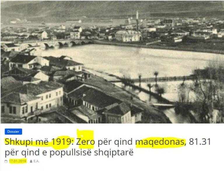 Έτσι στις δημογραφικές και στατιστικές έρευνες της Επιτροπής Εθνικής Προστασίας του Κοσσυφοπεδίου υπήρχε ένας πολυεθνικός πληθυσμός σε αυτήν την πόλη (Σκόπια) του Κοσσυφοπεδίου και των γύρω περιοχών, όπου κυριαρχούσε ο αλβανικός πληθυσμός, γράφει ο Αλβανός συντάκτης στην αλβανική ‘Koha’ των Σκοπίων.