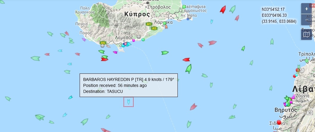 Στην κυπριακή ΑΟΖ πλέει το τουρκικό «ερευνητικό» σκάφος Barbaros καθορίζοντας τις εκτός από τις περιοχές που θα τρυπήσει το τουρκικό πλωτό γεωτρύπανο «Πορθητής» και τις αντοχές της Λευκωσίας και κατ΄επέκταση της Αθήνας.
