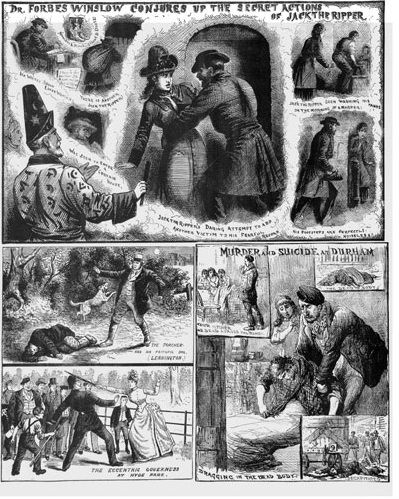 Σκίτσα και αναπαράσεις των φόνων του Τζακ του Αντεροβγάλτη από βρετανικές εφημερίδες της εποχής (Φωτογραφία: Wikipedia)
