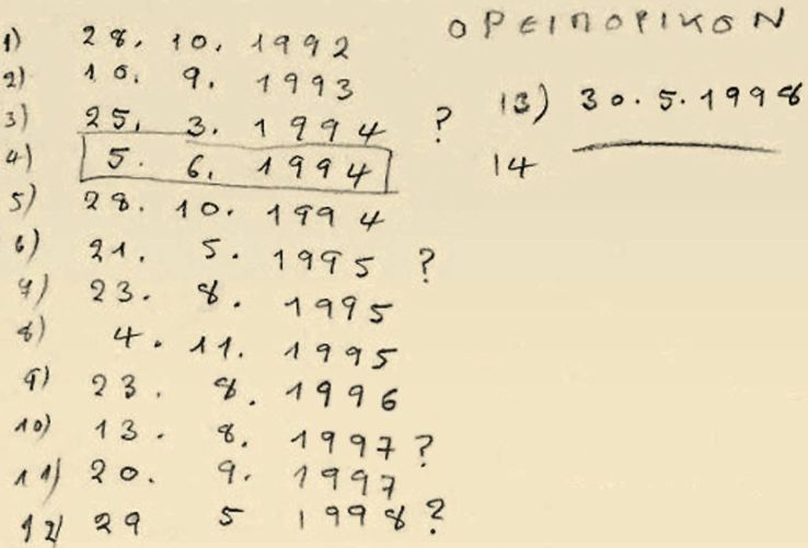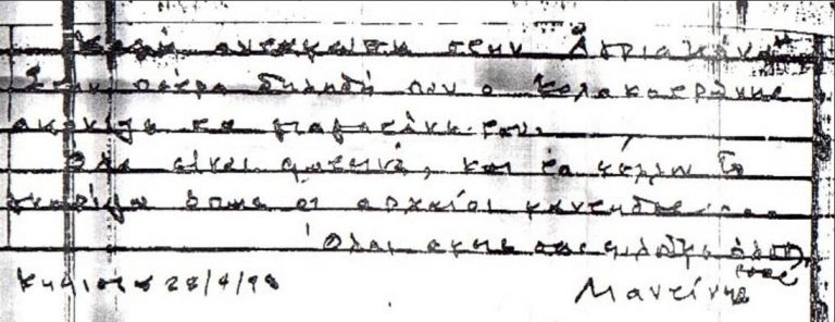 Στο κομοδίνο, δίπλα στο κρεβάτι του, εκεί που κοιμήθηκε το τελευταίο βράδυ ήταν το «H ζωή εν τάφω» του Mυριβήλη. Tο διάβαζε για τρίτη φορά και όπως συνήθιζε είχε σημειώσει την ημερομηνία σε μια σελίδα μαζί με μια φράση. 31-5-98 «Tην προτεραία της αύριον». Kαι στην τελευταία 31-5-98 «Αύριο είναι η μεγάλη μέρα».