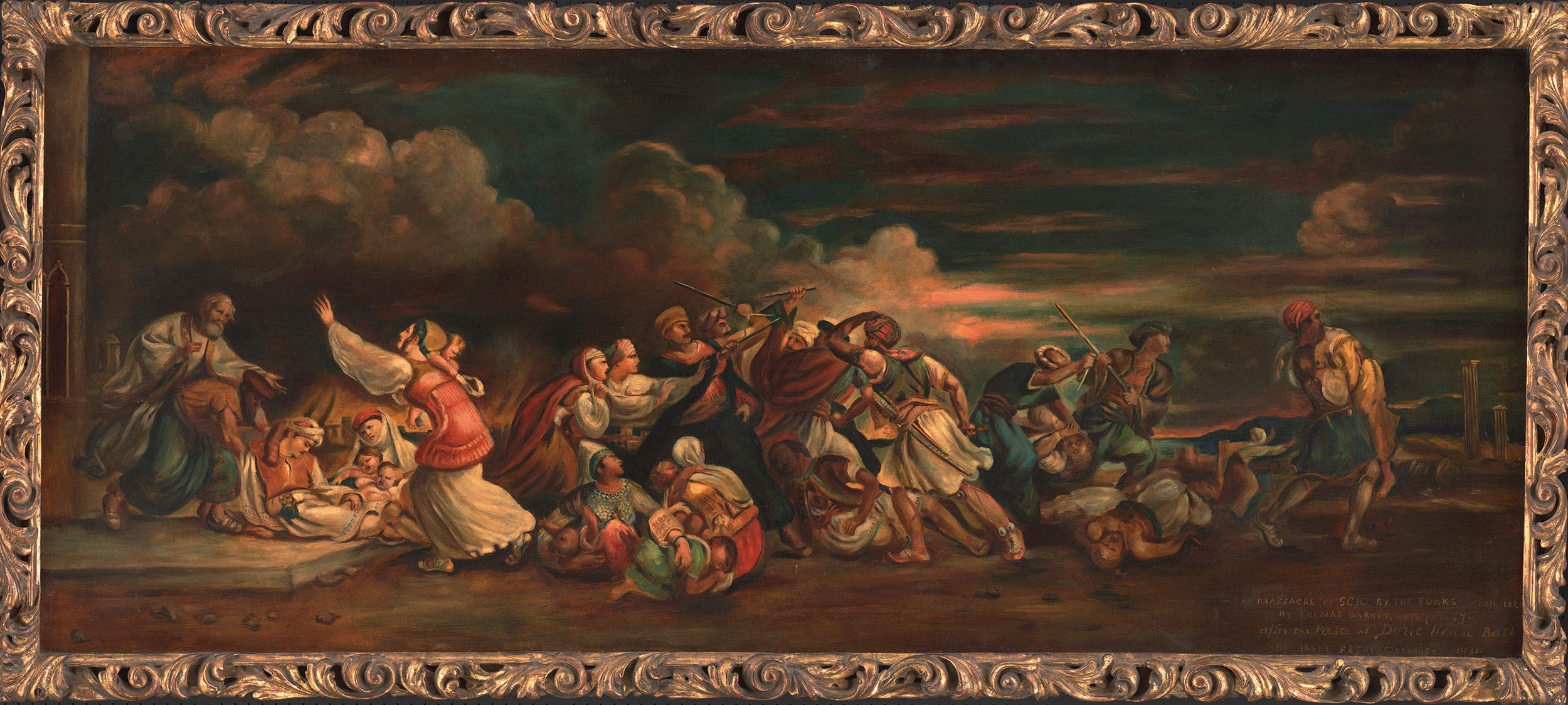 Τούρκοι παντού. Αγρίμια. Δολοφονούν, βιάζουν. Κατακόκκινοι βαμμένοι από το αίμα των αθώων θυμάτων τους συνεχίζουν να σκοτώνουν όποιον βρουν στο διάβα τους. Η Χίος πεθαίνει…30 Μαρτίου 1822