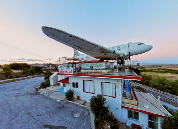 Ηταν στα τέλη της δεκαετίας του ’80 όταν το περίφημο «Καφέ αεροπλάνο» αποτελούσε την αγαπημένη καλοκαιρινή εξόρμηση οικογενειών και ζευγαριών που περνούσαν ώρες ατέλειωτες στο αεροσκάφος που βρέθηκε προσγειωμένο σε ένα διώροφο κτίριο στο 43οχιλιόμετρο Θεσσαλονίκης – Κατερίνης, στο Αιγίνιο Πιερίας και ορατό από την εθνική οδό.