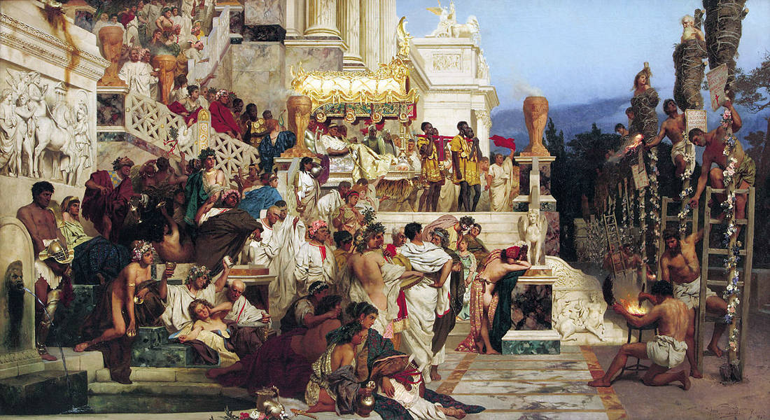 Ο νεαρός αυτοκράτορας απολάμβανε το ανατριχιαστικό θέαμα από το παλάτι, παίζοντας τη λύρα του, τραγουδώντας επικά ποιήματα και αντλώντας σαδιστικά έμπνευση από το μαρτύριο των άλλων. Όταν οι υπόνοιες στράφηκαν πάνω του, κατηγόρησε τους πρωτοχριστιανούς για τον εμπρησμό της Αιώνιας Πόλης, πυροδοτώντας τον πρώτο ανατριχιαστικό διωγμό των πιστών του νέου δόγματος.
