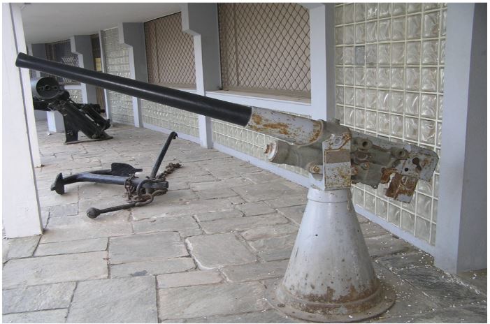 Πρόκειται για ένα μικρού διαμετρήματος ναυτικό πυροβόλο τοποθετημένο σε κωνική βάση, το οποίο είναι σε κακή κατάσταση λόγω οξειδώσεων (ως επακόλουθο της μη συντήρησης).