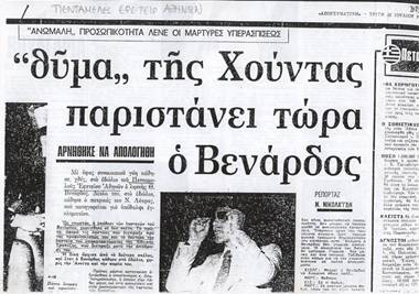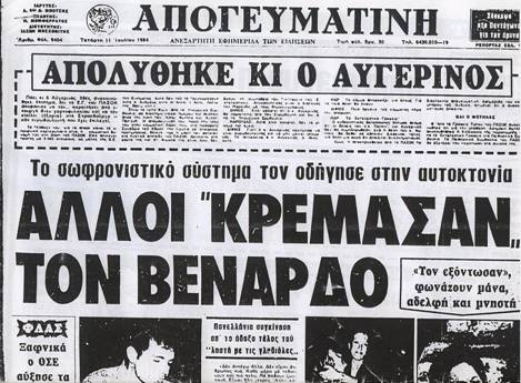 Και δεύτερον στη κηδεία του, ένα εντυπωσιακό στεφάνι έγραφε:«Από τα αήττητα παιδιά της 17 Νοέμβρη»! Ο Βενάρδος χρηματοδοτούσε τον αγώνα κατά της χούντας, με τα χρήματα από τις ληστείες του.