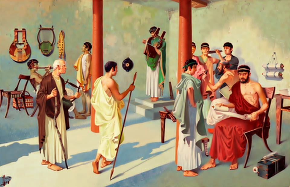 Στην αρχαία Ελλάδα ο «μουσικός ανήρ΄΄ ήταν ο μορφωμένος άνθρωπος. Ως γνωστόν, η διδασκαλία της μουσικής στην αρχαία Ελλάδα προηγήθηκε από αυτή των γραμμάτων. Η μουσική εκπαίδευση περιλάμβανε την διδασκαλία μουσικού οργάνου, τραγουδιού και χορού. Τα παιδία διδάσκονταν από τον «κιθαριστή΄΄ λύρα ή αυλό.Το παίξιμο της λύρας συνοδευόταν από την απαγγελία στίχων λυρικών ποιημάτων ή από τραγούδια συχνά ηρωικά κατορθώματα. Από εκεί βγήκε και η λυρική ποίηση.