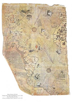 Αν και ο διάσημος αυτός παγκόσμιος χάρτης σε καμία περίπτωση δεν πλησιάζει την πραγματική εικόνα που βλέπουμε από ένα δορυφόρο, ωστόσο απεικονίζει τις ηπείρους και στις δύο πλευρές του Ατλαντικού, με αρκετά μεγάλη απόκλιση. Ο χάρτης Πίρι Ρεΐς Ο χάρτης Πίρι Ρεΐς, πήρε το όνομα του από έναν χαρτογράφο διάσημο ναύαρχο του τουρκικού στόλου. Σχεδιάστηκε το 1513, σχεδόν δύο δεκαετίες μετά την ανακάλυψη της Αμερικής από τον Χριστόφορο Κολόμβο και απεικονίζει τη δυτική ακτή της Αφρικής, την Ευρώπη καθώς επίσης και ολόκληρη την αμερικανική ήπειρο στον Ατλαντικό. Σύμφωνα με τον Πίρι Ρεΐς όμως, αυτός χάρτης βασίστηκε σε πολλούς άλλους χάρτες που χρονολογούνταν έως και τον 4ο αιώνα π.Χ !