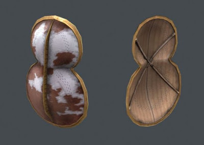 Το όπλο αυτό ήταν επίσης πρωτοποριακής σύλληψης για την εποχή του και προσέδωσε ακόμα μεγαλύτερη ισχύ στους άνδρες που το χρησιμοποιούσαν. Η οκτώσχημη ασπίδα είχε το ίδιο σχεδόν μέγεθος με την πυργόσχημη ποδήρη ασπίδα ήταν όμως κοίλη και ο πολεμιστής κυριολεκτικά μπορούσε να εισέλθει εντός της βρίσκοντας απόλυτη κάλυψη. Ήταν επίσης κατασκευασμένη από στρώσεις δερμάτων επί πλεγμένου με ξύλο λυγαριάς σκελετού.
