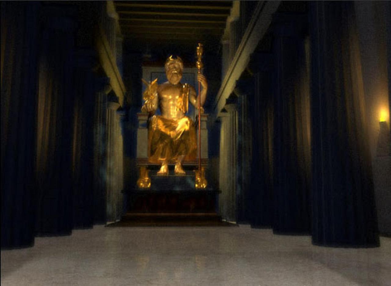 Σύμφωνα με μια άλλη εκδοχή ο Θεοδόσιος το 390 μ.Χ. το μετέφερε στην Κωνσταντινούπολη, όπου καταστράφηκε από φωτιά το 416 μ.Χ. Ο ναός λεηλατήθηκε από τους Γότθους, και τα υπολείμματά του γίνανε χριστιανικός ναός μέχρι που γκρεμίστηκε από έναν σεισμό. Αργότερα τα ερείπια σκεπάστηκαν από την κοίτη του ποταμού Αλφειού.