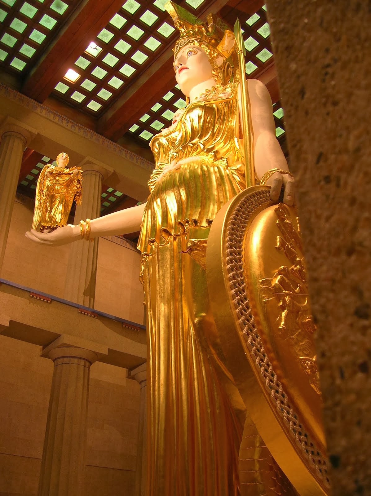 Η τεράστια ποσότητα χρυσού έδωσε αφορμή στους εχθρούς του Φειδία να τον κατηγορήσουν για κατάχρηση. Ο Φειδίας απέδειξε την αθωότητά του, επειδή ο Περικλής τον είχε συμβουλέψει να κάνει το χρυσό ένδυμα της Αθηνάς συναρμολογούμενο. Έτσι μπόρεσε να το αποσυναρμολογήσει και να το ζυγίσει. Το βάρος του χρυσού βρέθηκε ακέραιο κι έτσι ο Φειδίας αθωώθηκε. Όμως κατόπιν κατηγορήθηκε για αλαζονεία επειδή στην εξωτερική όψη της ασπίδας της Αθηνάς, που έφερε ανάγλυφη Αμαζονομαχία, παρέστησε σε δύο Αθηναίους πολεμιστές το πορτρέτο του Περικλή και το δικό του. Ο Φειδίας συνελήφθη και καταδικάστηκε.