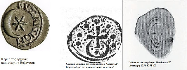 Σήμερα όσοι θέλουν να δουν την ημισέληνο σε βυζαντινά νομίσματα δεν έχουν παρά να επισκεφθούν τις νομισματικές συλλογές των Ελληνικών Μουσείων αλλά ακόμα και σε Βυζαντινές τοιχογραφίες στη Λακωνία (χωριό Γεράκι κ.α.), όπου υπάρχει πεντακάθαρο σε ασπίδα του Αγίου Γεωργίου.