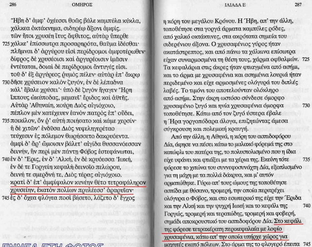 Σας παραπέμπουμε σε ένα σημείο (από τα πολλά που δίνουν τροφή για σκέψη) της Ιλιάδος του Ομήρου, στην Ραψωδία Ε’ και στους στίχους 743-744.