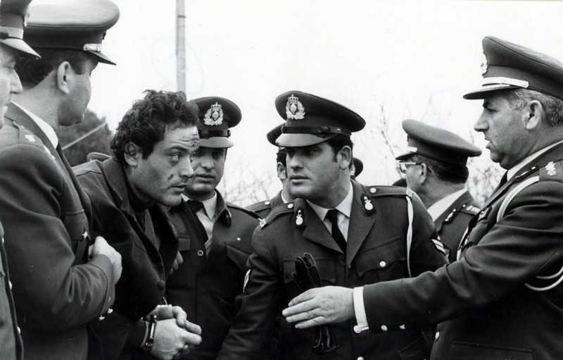 Σε απόσταση 800 μέτρων εντοπίσθηκε από δύο περιπολικά, αφού οι περίοικοι είχαν τηλεφωνήσει στην αστυνομία. Οι αστυνομικοί προσπάθησαν να τον συλλάβουν, ωστόσο ο ίδιος, κατάφερε προσποιούμενος πως παραδίδεται αρχικά, να ξεφύγει, παίρνοντας ξανά το κεφάλι του θύματος και το μαχαίρι και επιβιβαζόμενος σε ένα από τα τζιπ των αστυνομικών. Στη συνέχεια, επιχειρώντας να απομακρυνθεί από το σημείο ανέπτυξε ταχύτητα και προκάλεσε ατύχημα κάνοντας ελιγμό, με αποτέλεσμα να προσκρούσει σε ένα δίκυκλο που ερχόταν με αντίθετη κατεύθυνση στην επαρχιακή οδό Φηρών – Πύργου. Από το ατύχημα, η μία κοπέλα εκτοξεύθηκε περίπου 15 μέτρα μακριά ενώ η οδηγός έπεσε στο οδόστρωμα. Στο σημείο εκείνο υπήρξαν νέες προσπάθειες σύλληψης του δράστη από τους αστυνομικούς, ο ένας εκ των οποίων χρησιμοποιώντας όπλο και πυροβολώντας τον και στα πόδια κατάφερε να τον ακινητοποιήσει. Τελικά, ο 36χρονος δολοφόνος κρίνεται ομόφωνα ένοχος για όλες τις κατηγορίες και σε δεύτερο βαθμό.