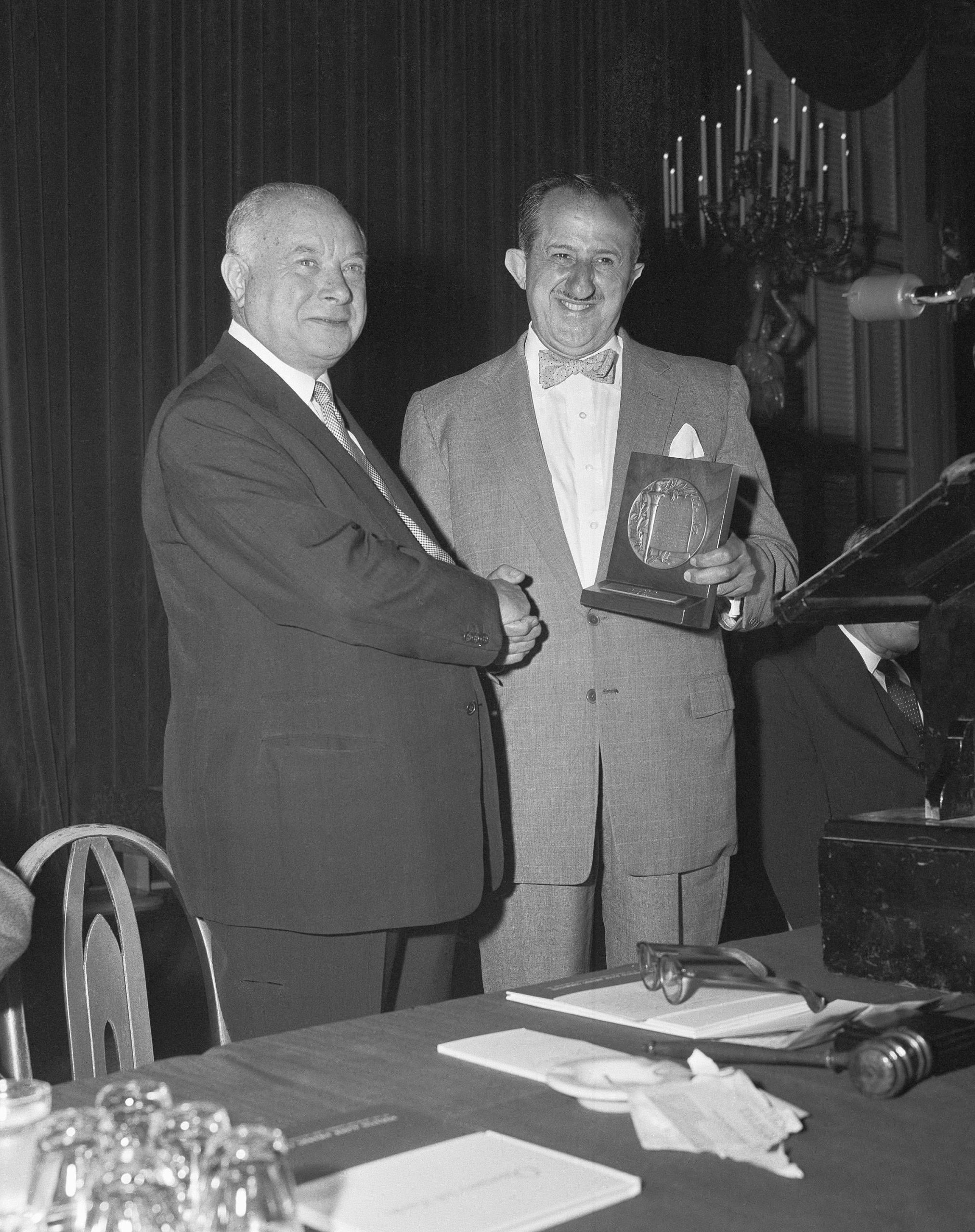 Ο Τομ Κάρβελ με το βραβείο διάκρισης ραδιοφώνου για τις φωνές που ξεχώρισαν στην Αμερική το 1957 / Φωτογραφία: AP Photos