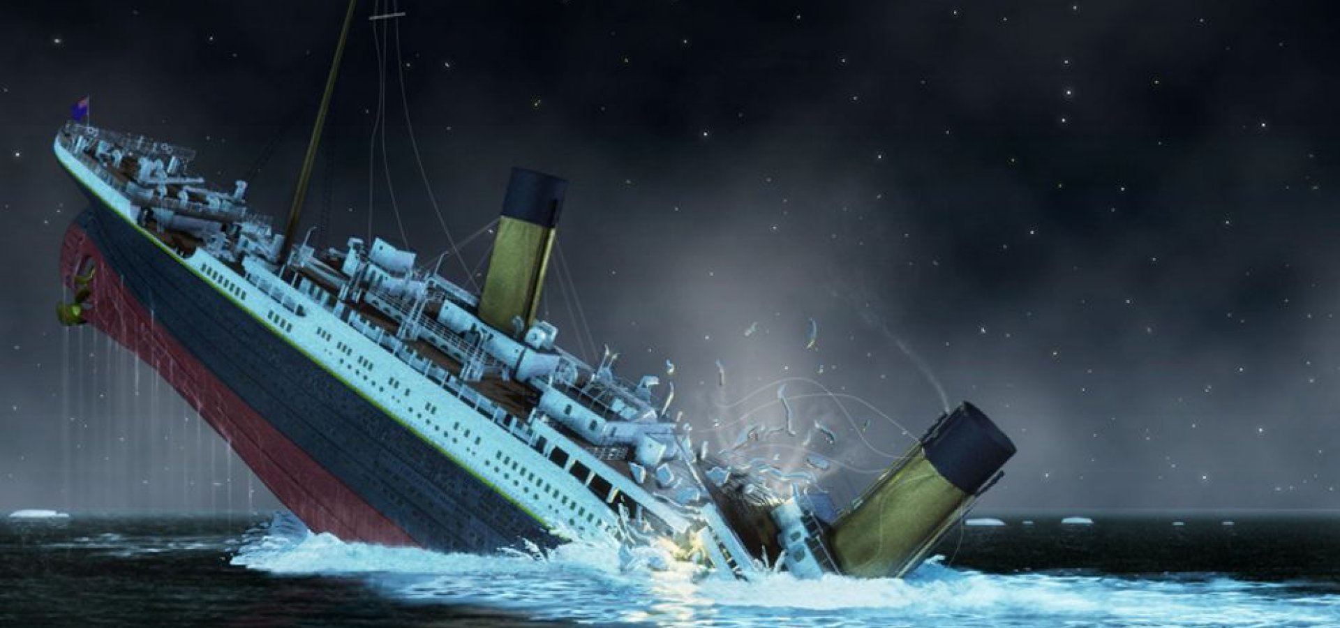 Το 1912 ο Τιτανικός θεωρείται επίσης ένα αβύθιστο θαύμα, χτισμένο πάνω σε 19 στεγανά. Ακόμη και 9 από αυτά να γεμίσουν νερό δεν είναι αρκετά για να βυθιστεί. Μόνο 20 σωστικές λέμβοι περιλαμβάνονται στον εξοπλισμό. Βυθίζεται τη νύχτα της 14ης Απριλίου, σωστά μαντέψατε, στο Βόρειο Ατλαντικό μετά από σύγκρουση με παγόβουνο.