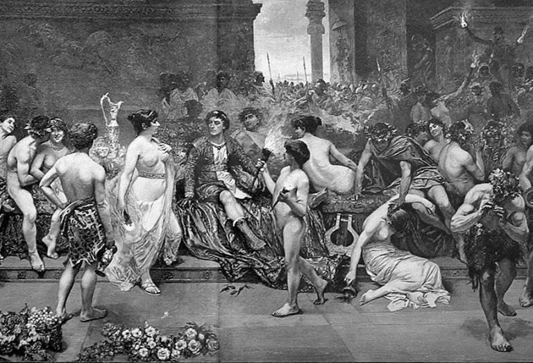 Το 333 π.Χ. ο Μ. Αλέξανδρος με τον μακεδονικό στρατό κατέλαβε την Περσέπολη. Ο Μακεδόνας στρατηλάτης γιόρτασε τη νίκη του με θυσίες στους θεούς και μια μεγάλη γιορτή, όπου έρεε άφθονο αλκοόλ και οι στρατιώτες του απολάμβαναν την παρέα των εταίρων. Ανάμεσα στις εταίρες ήταν και η Θαΐς, η οποία κατά τη διάρκεια της γιορτής σηκώθηκε όρθια και απηύθυνε λόγο στους Μακεδόνες.