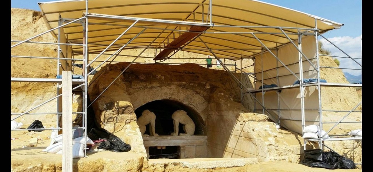 Σημειώνεται ότι, στο μαρμάρινο επιστύλιο πίσω από τις Σφίγγες έχει βρεθεί μίμηση ιωνικού κιονόκρανου και στο δάπεδο βοτσαλωτό ψηφιδωτό με ρόμβους και παράσταση την αρπαγή της Περσεφόνης. Τα ταφικό μνημείο με τις Σφίγγες, τις εξαιρετικής τέχνης Καρυάτιδες από μάρμαρο Θάσου και ίχνη κόκκινου και κυανού χρώματος, το ψηφιδωτό δάπεδο και την ταφική θήκη με τα οστά, συνηγορούν στο ότι επρόκειτο για ένα σημαντικό μνημείο. Η ανασκαφέας που το έφερε στο φως, η Κατερίνα Περιστέρη έχει κατ΄επανάληψη διατυπώσει την θεωρία ότι το μνημείο ήταν παραγγελία του Μεγάλου Αλεξάνδρου για τον αδελφικό του φίλο Ηφαιστίωνα και ότι αποτελεί έργο του κορυφαίου αρχιτέκτονα της εποχής, Δεινοκράτη. Κι ενώ οι εργασίες εντός και εκτός του τύμβου Καστά συνεχίζονται, ο κ. Τσόκας και η ομάδα του θα επιστρέψουν στην περιοχή για νέες γεωφυσικές διασκοπήσεις γύρω από το ταφικό μνημείο.