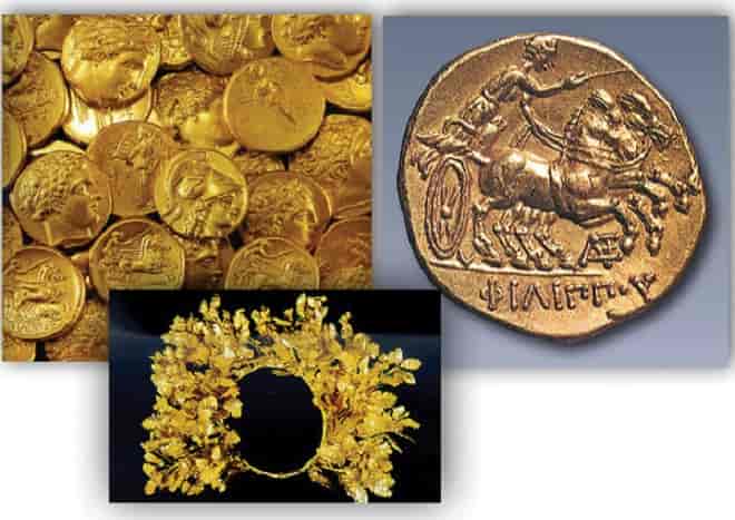 Με οικονομικό υπόβαθρο το χρυσό του Παγγαίου ο δαιμόνιος Μακεδόνας βασιλιάς Φίλιππος Β’ του Αμύντα κατόρθωσε να δημιουργήσει ακαταμάχητο στρατό με τον οποίο επέβαλε τη θέληση του τόσο στα βαρβαρικά φύλλα που απειλούσαν τη Μακεδονία (Ιλλυριούς και Δαρδανούς), όσο και στους Έλληνες, τους οποίους συνένωσε σε αντιπερσική συμμαχία, άλλοτε με υποσχέσεις, άλλοτε με δωροδοκίες και άλλοτε με τη βία (Χαιρώνεια 338 π.Χ.).