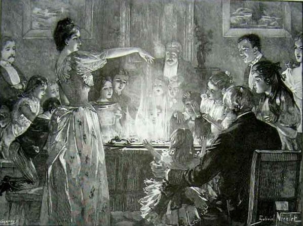 Η βραδιά έκλεινε ήσυχα. Η οικογένεια μαζευόταν γύρω από το τζάκι και οι μεγαλύτεροι έλεγαν ιστορίες στους μικρότερους. Δεν ήταν όμως παραμύθια για Άγιους Βασίληδες και καλά ξωτικά. Συνήθεις πρωταγωνιστές ήταν φαντάσματα, πνεύματα και μάγισσες, ενώ το τέλος δεν ήταν πάντα χαρούμενο. Η πρωτότυπη εκδοχή της «Χριστουγεννιάτικης Ιστορίας» του Ντίκενς αποτελεί ένα ενδεικτικό παράδειγμα της «επίγευσης» που άφηναν τα παραμύθια της εποχής.