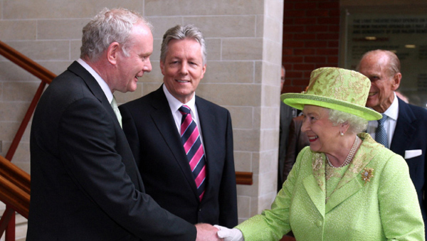 Σε μια πράξη μάλιστα που λίγα χρόνια πριν θα φαινόταν αδιανόητη, η βασίλισσα έσφιξε στο Μπέλφαστ το χέρι του Martin McGuinness, του αλλοτινού διοικητή του ΙΡΑ! Η χειρονομία αντιπροσώπευσε ένα αξιοσημείωτο σημάδι συμφιλίωσης και για τις δύο πλευρές, καθώς η βασίλισσα είναι ο (τιμητικός) αρχηγός των βρετανικών στρατευμάτων.