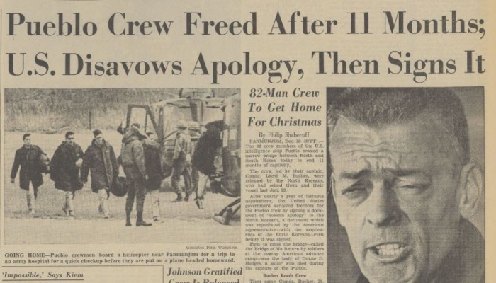 Όμως το αμερικανικό πλοίο Pueblo, λίγες εβδομάδες μετά τα Χριστούγεννα καταλαμβάνεται από τους Βορειοκορεάτες και το πλήρωμα του συλλαμβάνεται.