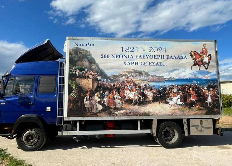 Ένας Πελοποννήσιος Οδηγός από το Δρέπανο Ναυπλίου, επέλεξε με το δικό του μοναδικό τρόπο να εορτάσει και να υπενθυμίσει στους νεότερους Έλληνες, τους ήρωες της Επανάστασης του 1821.