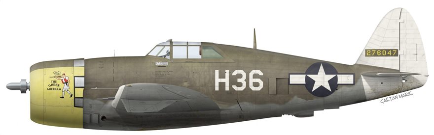 Ο Harry Coronios: Καταγόταν από τον Κλαδά, ένα χωριό το οποίο βρίσκεται κοντά στη Σπάρτη. Υπηρέτησε ως χειριστής P-47D στο 56thFG και το προσωπικό του αεροσκάφος το είχε ονομάσει “The Greek”. Στις 8/10/1943 σε αποστολή συνοδείας βομβαρδιστικών κατέρριψε ένα FW-190 και προξένησε ζημιές σε ένα ακόμη. Σκοτώθηκε στις 17/11/1943 στην διάρκεια εκπαιδευτικής πτήσεως λόγω παγοποίησης στις επιφάνειες ελέγχου.
