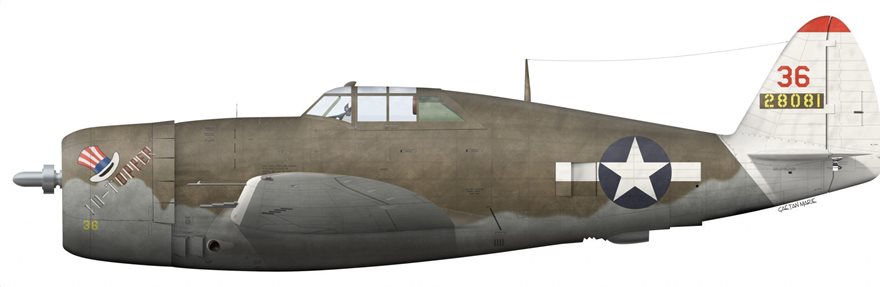 Ο Spiros Karavedas: Καταγόταν από την Βαρβάσαινα του Νομού Ηλείας. Υπηρέτησε στο 58thFG πετώντας με ένα P-47D το οποίο το είχε ονομάσει “The Greek Guerilla” (σ.σ. «Ο Έλληνας Αντάρτης») και το οποίο απεικόνιζε έναν εύζωνα που φώναζε «Αέρα». Ο Καραβίδας πολέμησε στο μέτωπο του Νότιο-Δυτικού Ειρηνικού, εκτελώντας αναρίθμητες αποστολές πολυβολισμού/βομβαρδισμού, εναντίον Ιαπωνικών επίγειων στόχων.