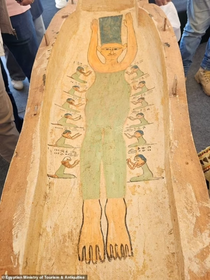 Οι αρχαιολόγοι ανακάλυψαν το φέρετρο στις αρχές του 2023 και βρήκαν το σχέδιο που έμοιαζε με τη Marge Simpson στο εσωτερικό του καπακιού που περιβαλλόταν από μια ντουζίνα αρχιέρειες που αντιπροσώπευαν τις 12 ώρες της ημέρας.