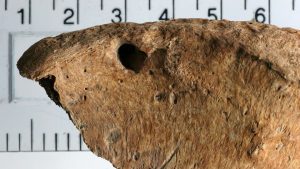 Η λεκάνη του σκελετού, ο οποίος ανήκει σε άνδρα 26 έως 35 ετών και χρονολογείται γύρω στον 3ο αιώνα μ.Χ., φέρει μεγάλες οπές από δόντια αιλουροειδούς, πιθανότατα λιονταριού.