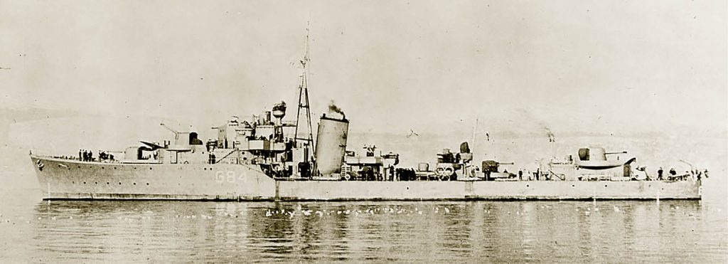 Ήταν αρχηγίδα της συνοδείας της νηοποµπής εναντίον της οποίας επετέθη το υποβρύχιο «ΤΡΙΤΩΝ» στις 16 Νοεµβρίου του 1942 ακρωτήριο Καφηρέας µε κυβερνήτη τον υποπλοίαρχο Επαµεινώνδα Κοντογιάννη βυθίζοντας ένα γερµανικό δεξαµενόπλοιο αλλά στη συνέχεια το υποβρύχιο θα βληθεί µε βόµβες βυθού και θα βυθιστεί παρασύροντας µαζί του και 24 µέλη του πληρώµατος.