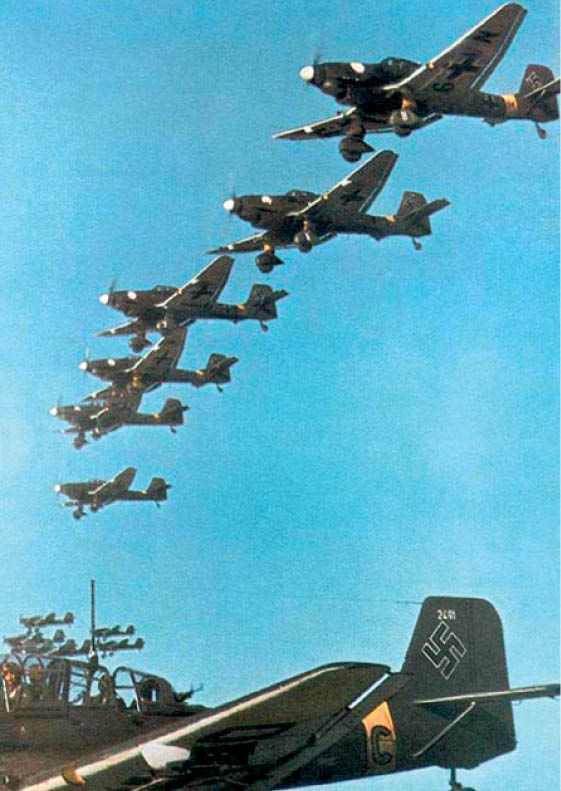 Όμως τα Stuka καραδοκούσαν. Μόλις εντοπίστηκαν οι θέσεις των γαλλικών πυροβόλων, το ένα μετά το άλλο τα γερμανικά «πουλιά» άρχιζαν να βυθίζονται, με τις σειρήνες τους να παράγουν ένα δαιμονισμένο θόρυβο, σμήνος μετά το σμήνος.