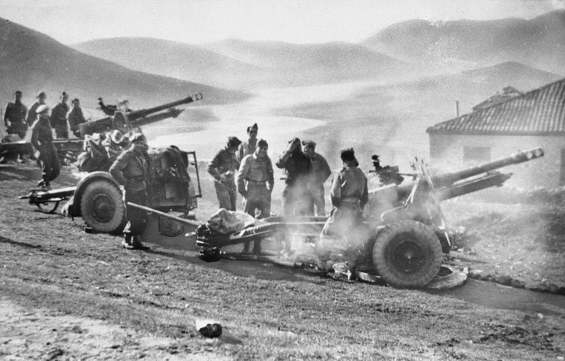 Δύο Μοίρες Πυρ/κού και μικρή Εφεδρεία στο Καλπάκι. Το 582 Τ.Π. κατείχε το ύψωμα Προφήτης Ηλίας που δεσπόζει της Κόνιτσας, πλην ενός Λόχου, του 3ου, που φρουρούσε τη Γέφυρα του Μπουραζανίου. Το 584 Τ.Π. του Ταγ/ρχου Στυλιανού Τζουβάρα, επιτίθεται από Καλπάκι και Δολιανά επί των υψωμάτων αριστερά της οδού Καλπακίου – Κονίτσης με κατεύθυνση προς τη Γέφυρα Μπουραζανίου, όπου και φθάνει ανατρέποντας την αντίσταση των ανταρτών κατόπιν λυσσώδους αγώνα επί ημέρες και νύχτες.