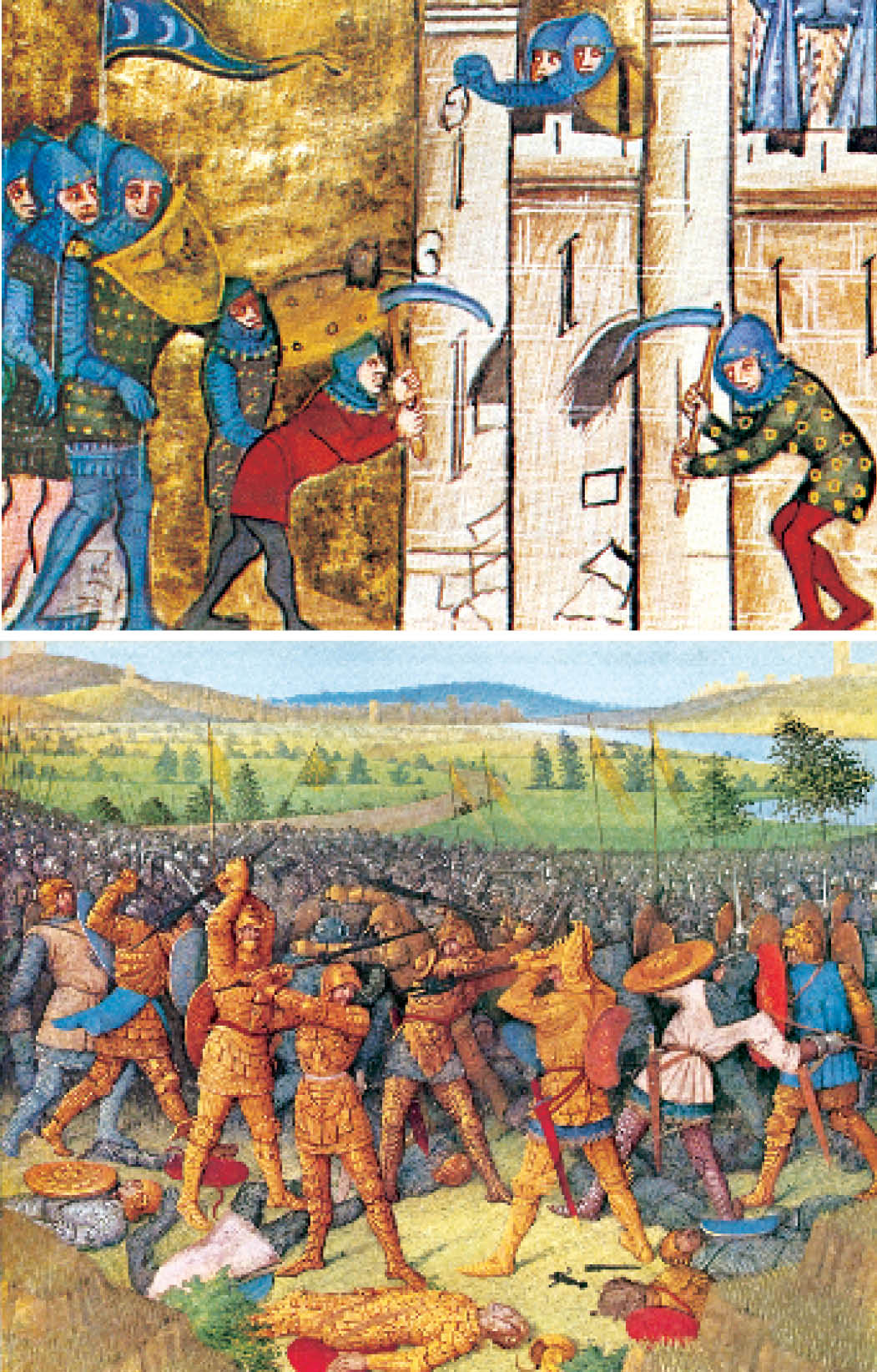 Το ίδιο έπρατταν και οι Ούννοι ιππείς. Παρ’ όλα αυτά, οι Ρωμαίοι άντεξαν. Όταν οι εχθροί σκαρφάλωναν επάνω στις ασπίδες τους, οι λεγεωνάριοι τις ύψωναν, ώστε να τους κρατήσουν ψηλά και τους έκοβαν τα πόδια με τα σπαθιά τους.