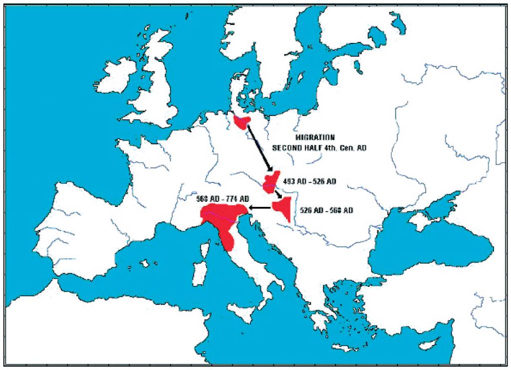 Υποταγμένοι για ένα διάστημα στους Αβάρους, οι Λομβαρδοί κινήθηκαν στα μέσα του 6ου αιώνα μ.Χ. από την κοιλάδα του κάτω Δούναβη προς την Ιταλία, στην οποία εισέβαλαν και κατέκτησαν το μεγαλύτερο μέρος της, ιδρύοντας περί τα δέκα κρατίδια.