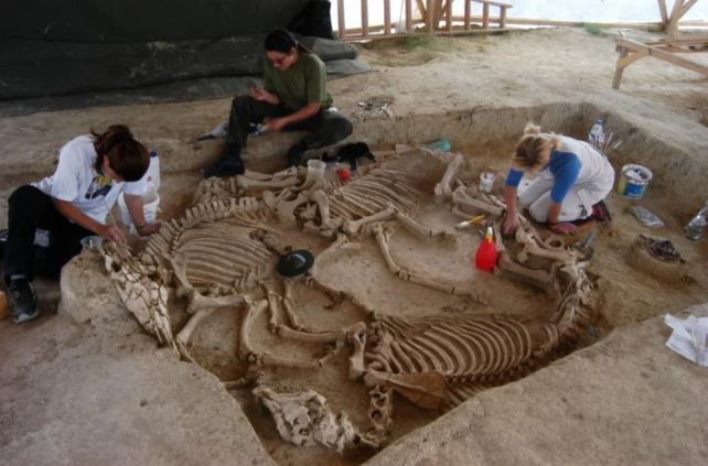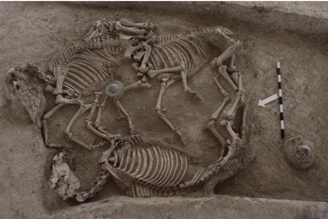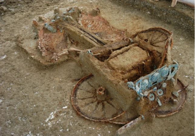 Στην ανασκαφή βρέθηκαν τέσσερις λάκκοι με υπολείμματα από την καύση τριών ανδρών και μιας γυναίκας που συνοδεύονταν από πολυάριθμα χάλκινα, σιδερένια, γυάλινα και πήλινα κτερίσματα. Παράλληλα βρέθηκαν πέντε άμαξες με τα υποζύγιά τους καθώς και δύο ταφές πέντε επιπλέον αλόγων.