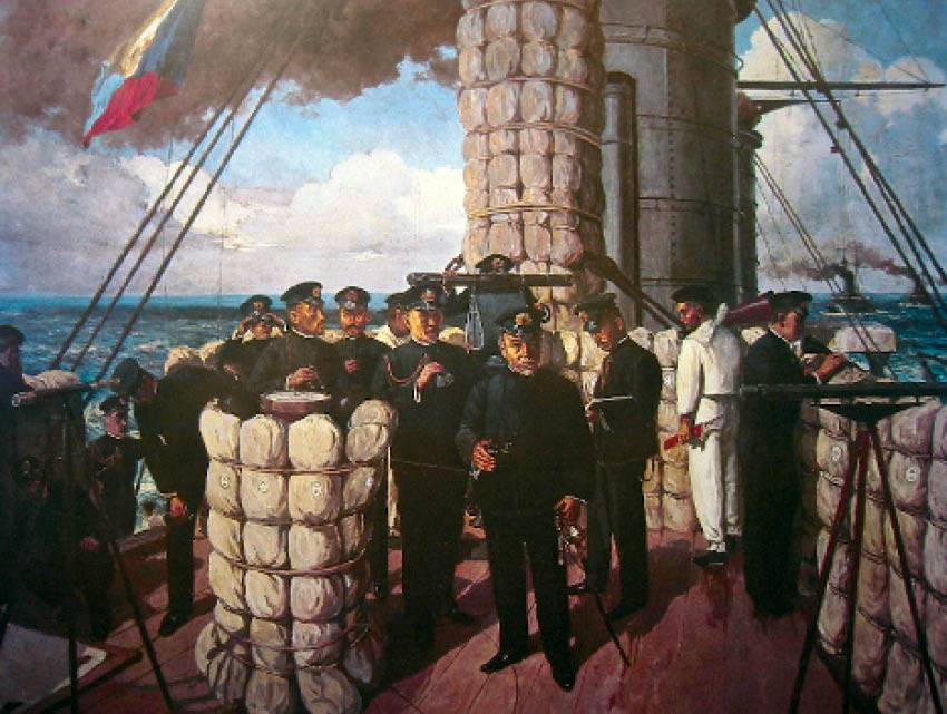 Ο Ρώσος ναύαρχος τραυματίστηκε. Ένα αντιτορπιλικό τον παρέλαβε. Το Σουβόροβ στο μεταξύ, όπως και το Οσλιάμπια, επικεφαλής της δεύτερης στήλης του ρωσικού στόλου, είχαν μετατραπεί σε φλεγόμενα επιπλέοντα φέρετρα. Το Σουβόροβ πάντως αρνούνταν να βυθιστεί και συνέχισε να πολεμά με τα μικρότερα πυροβόλα του μέχρι τις 7:20 μ.μ., οπότε και οι τορπίλες των ιαπωνικών τορπιλοβόλων το έστειλαν στον βυθό μαζί με 928 άνδρες του.