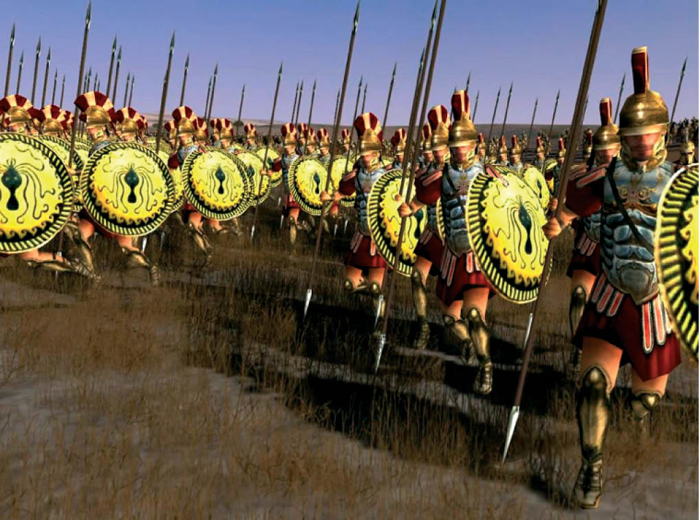 Όταν όμως οι Μακεδόνες έφτασαν στα 150-200 μ. από τους αντιπάλους τους θα πρέπει να άνοιξαν οι πύλες της κόλασης. Την έναρξη έκαναν οι γαστραφέτες, της πρώτης γραμμής. Τα μεγάλα βέλη τους περνούσαν τις ασπίδες των πολεμίων σαν να ήταν από χαρτί, με δύναμη τόση, που κατάφερναν πλήγμα και στον άντρα που βρισκόταν πίσω από τον πρώτο στη σειρά.