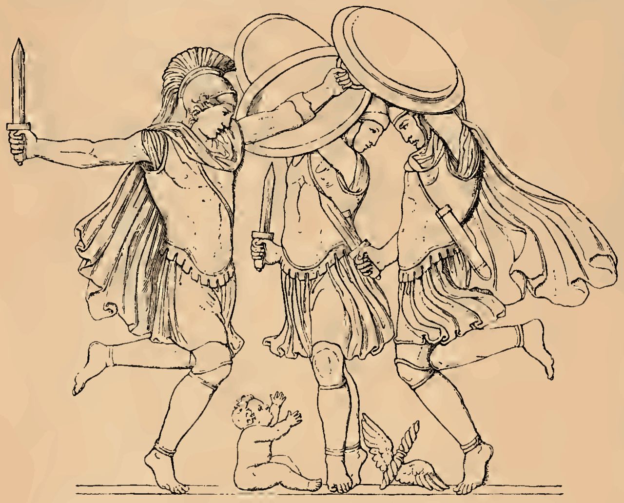 Ο πυρρίχιος είναι ο αρχαιότερος ελληνικός πολεμικός χορός. Οι χορευτές χόρευαν κρατώντας ασπίδα και δόρυ και φορώντας περικεφαλαία.
