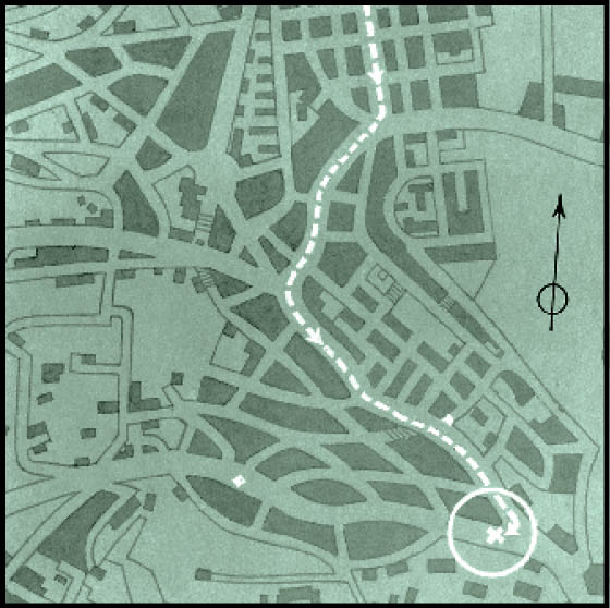 Οι δύο άνδρες, λαμβάνοντας το σήμα, ξεκινούν γρήγορα. Πρώτος ο Γκάμπκικ διασχίζει κάθετα το δρόμο, αποφεύγοντας ένα διερχόμενο τραμ την τελευταία στιγμή. Ο Κιούμπις τον προσπερνά και βρίσκεται πρώτος στη θέση του.