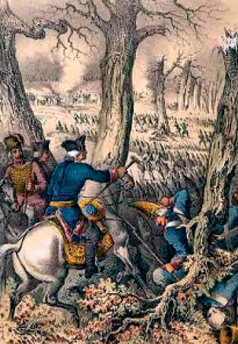 Το χειρότερο όμως ήταν ότι οι Αυστριακοί τούς αντελήφθησαν και άνοιξαν καταιγιστικό πυρ εναντίον τους. Οι Πρώσοι για πρώτη φορά άρχισαν να υποχωρούν. Τότε όμως επενέβη ο στρατάρχης Σβέριν, ο οποίος άρπαξε στο χέρι τη σημαία τού 24ου Συντάγματος και όρμησε μπροστά προστάζοντας τους άνδρες του να τον ακολουθήσουν. Δεν πρόλαβε όμως να προχωρήσει πολύ. Ένας αυστριακός μύδρος τον κομμάτιασε.