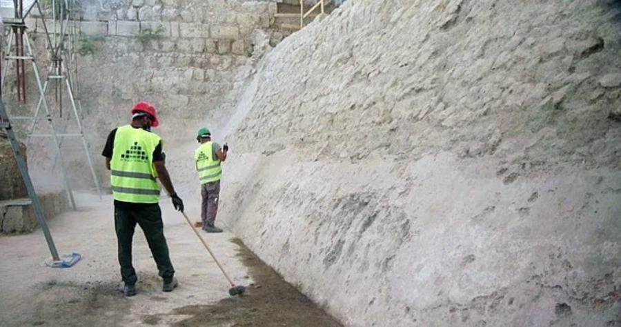 Οι ανασκαφές αποκάλυψαν έναν γιγαντιαίο τοίχο–φράγμα, που σηματοδοτούσε το σημείο στο οποίο κατασκευάστηκε η κολυμβήθρα. Οι επιστήμονες της Αρχής Αρχαιοτήτων του Ισραήλ χρονολογούν την κατασκευή πριν από 2.800 χρόνια, στην περίοδο του Πρώτου Ναού, όταν βασίλευαν οι Ιωάς και Αμασίας του Ιούδα.