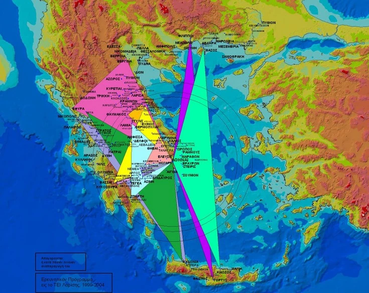 Το γιατί έχτιζαν οι αρχαίοι Έλληνες τους χώρους λατρείας τους κατά τρόπο που να δημιουργούν στον χάρτη ισόπλευρα και ισοσκελή τρίγωνα ή να επαληθεύουν περίπλοκες μαθηματικές σχέσεις παραμένει το μεγάλο ζητούμενο, με τα ερωτήματα που ανακύπτουν να είναι πολλά και ποικίλα: τι εξυπηρετούσε η ιερή αυτή χωροθεσία αλλά και πώς υπολόγιζαν τις τεράστιες αποστάσεις (πόσο μάλλον όταν παρεμβαλλόταν ανάμεσά τους η θάλασσα); Και βέβαια μπορεί δύο ισοσκελή τρίγωνα να έχουν κλέψει όλη τη δόξα, εγείροντας συνωμοσιολογικές θεωρίες για ενεργειακά μαγνητικά πεδία και άλλα πολλά, ο τριγωνισμός φαίνεται πάντως πως ήταν γενικευμένη πρακτική της ελληνικής ζωής.