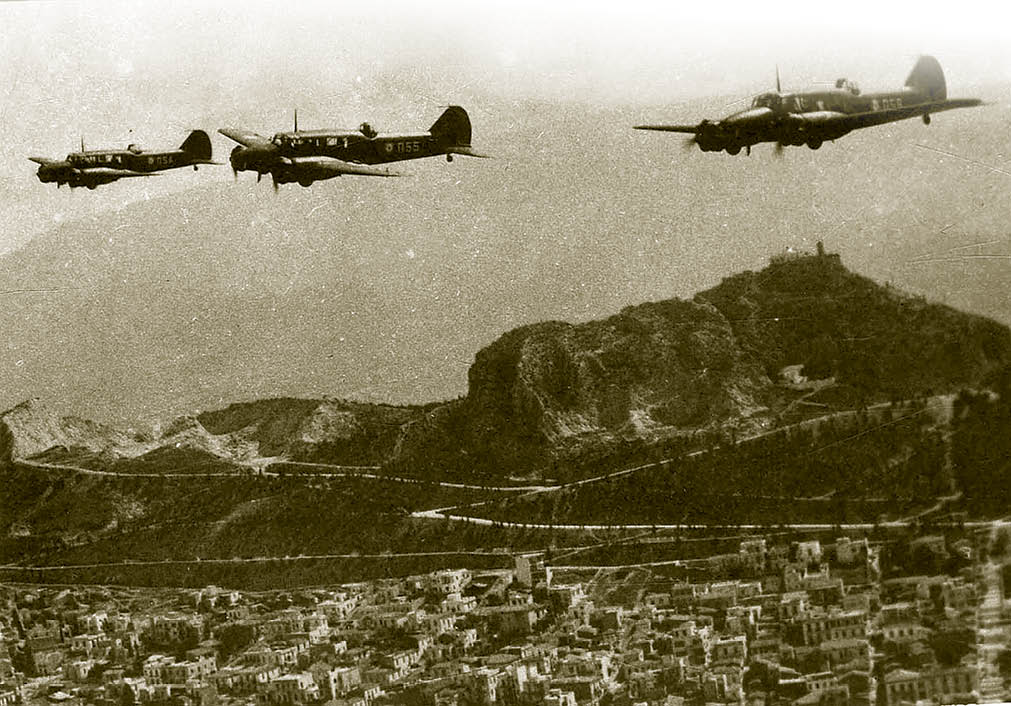 Στις 14 Μαρτίου 1941, ένα Avro Anson της 13ης Μοίρας, µε πλήρωµα τον Επισµηναγό ∆ακόπουλο Σπυρίδωνα ως χειριστή, το Σµηνία Μακρή ως ασυµαρτιστή και το Σµηνία Χρήστο Σπέντζο ως παρατηρητή συναντήθηκε µε τρία ιταλικά βοµβαρδιστικά, Savoia-Marchetti SM.79 κατά τη διάρκεια αποστολής συνοδείας νηοποµπής του Avro Anson στην περιοχή της Κρήτης.