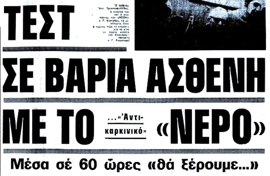 «Τεστ σε βαριά ασθενή με το αντικαρκινικό νερό – Μέσα σε 60 ώρες θα ξέρουμε…» (σσ. Το τεστ θα βγει αρνητικό).