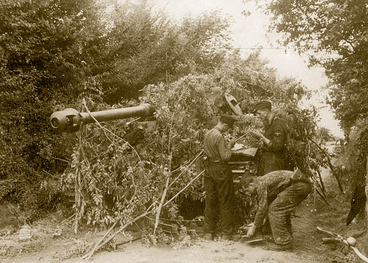Ο Βίτμαν πήδηξε από το άρμα και μαζί με τον λοχία προχώρησαν περίπου 400 μ. προς την κατεύθυνση αυτών των αρμάτων. Σύντομα ακούσθηκε θόρυβος πολυαρίθμων μηχανοκινήτων από τη μεριά της οδού Ν175. Καλυμμένοι οι δύο άνδρες μέσα στις λόχμες, ανασήκωσαν προσεκτικά τα κεφάλια τους για να αντικρίσουν μια μεγάλη φάλαγγα εχθρικών τεθωρακισμένων να κατευθύνονται με ταχύτητα προς τα βορειοανατολικά.
