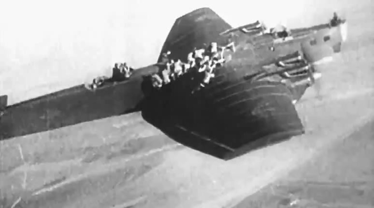Ήταν το εξής: οι στρατιώτες έβγαιναν από το αεροπλάνο εν πτήσει, περπατούσαν κατά μήκος της ατράκτου και γλιστρούσαν από την πίσω άκρη της πτέρυγας στο ρεύμα ολίσθησης.
